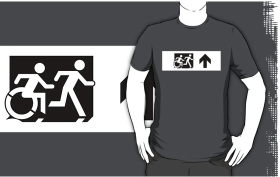 Accessible Exit Sign Project Wheelchair Wheelie Running Man Symbol Means of Egress Icon Disability Emergency Evacuation Fire Safety Adult T-shirt 637