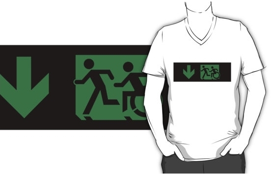 Accessible Exit Sign Project Wheelchair Wheelie Running Man Symbol Means of Egress Icon Disability Emergency Evacuation Fire Safety Adult T-shirt 645