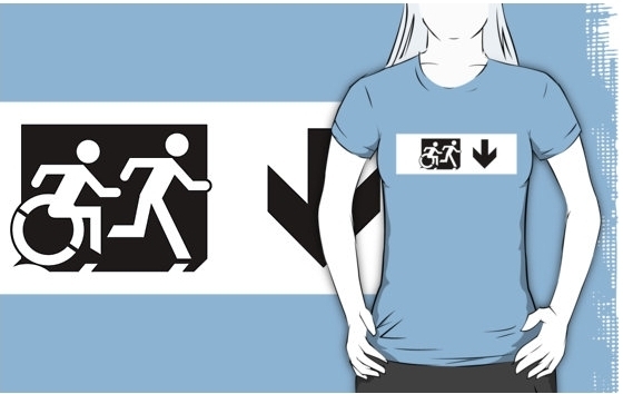 Accessible Exit Sign Project Wheelchair Wheelie Running Man Symbol Means of Egress Icon Disability Emergency Evacuation Fire Safety Adult T-shirt 648