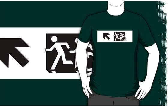 Accessible Exit Sign Project Wheelchair Wheelie Running Man Symbol Means of Egress Icon Disability Emergency Evacuation Fire Safety Adult T-shirt 651