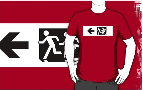 Accessible Exit Sign Project Wheelchair Wheelie Running Man Symbol Means of Egress Icon Disability Emergency Evacuation Fire Safety Adult T-shirt 654