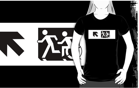 Accessible Exit Sign Project Wheelchair Wheelie Running Man Symbol Means of Egress Icon Disability Emergency Evacuation Fire Safety Adult T-shirt 655