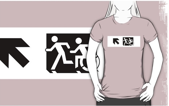 Accessible Exit Sign Project Wheelchair Wheelie Running Man Symbol Means of Egress Icon Disability Emergency Evacuation Fire Safety Adult T-shirt 657