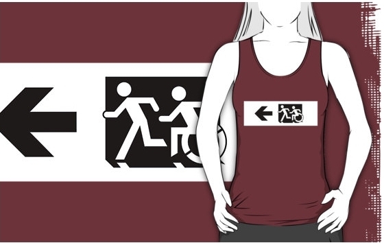 Accessible Exit Sign Project Wheelchair Wheelie Running Man Symbol Means of Egress Icon Disability Emergency Evacuation Fire Safety Adult T-shirt 663