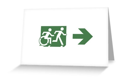 Accessible Exit Sign Project Wheelchair Wheelie Running Man Symbol Means of Egress Icon Disability Emergency Evacuation Fire Safety Greeting Card 75