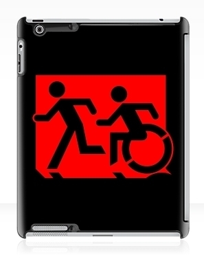 Accessible Exit Sign Project Wheelchair Wheelie Running Man Symbol Means of Egress Icon Disability Emergency Evacuation Fire Safety iPad Case 111