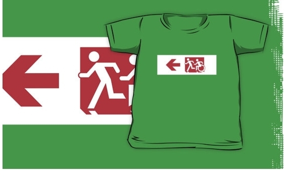 Accessible Exit Sign Project Wheelchair Wheelie Running Man Symbol Means of Egress Icon Disability Emergency Evacuation Fire Safety Kids T-shirt 157