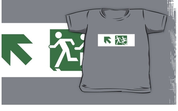 Accessible Exit Sign Project Wheelchair Wheelie Running Man Symbol Means of Egress Icon Disability Emergency Evacuation Fire Safety Kids T-shirt 177