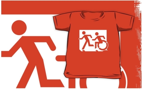 Accessible Exit Sign Project Wheelchair Wheelie Running Man Symbol Means of Egress Icon Disability Emergency Evacuation Fire Safety Kids T-shirt 194