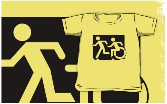 Accessible Exit Sign Project Wheelchair Wheelie Running Man Symbol Means of Egress Icon Disability Emergency Evacuation Fire Safety Kids T-shirt 208