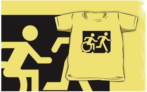 Accessible Exit Sign Project Wheelchair Wheelie Running Man Symbol Means of Egress Icon Disability Emergency Evacuation Fire Safety Kids T-shirt 229