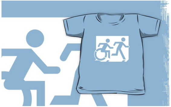 Accessible Exit Sign Project Wheelchair Wheelie Running Man Symbol Means of Egress Icon Disability Emergency Evacuation Fire Safety Kids T-shirt 250