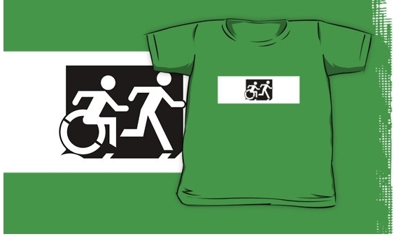 Accessible Exit Sign Project Wheelchair Wheelie Running Man Symbol Means of Egress Icon Disability Emergency Evacuation Fire Safety Kids T-shirt 274