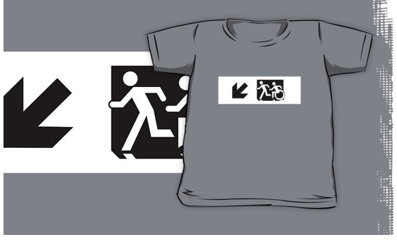 Accessible Exit Sign Project Wheelchair Wheelie Running Man Symbol Means of Egress Icon Disability Emergency Evacuation Fire Safety Kids T-shirt 110