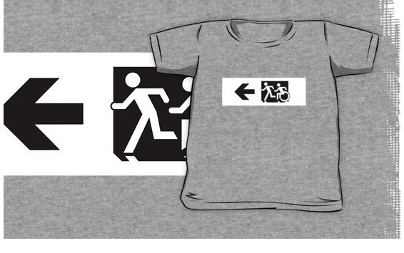 Accessible Exit Sign Project Wheelchair Wheelie Running Man Symbol Means of Egress Icon Disability Emergency Evacuation Fire Safety Kids T-shirt 114