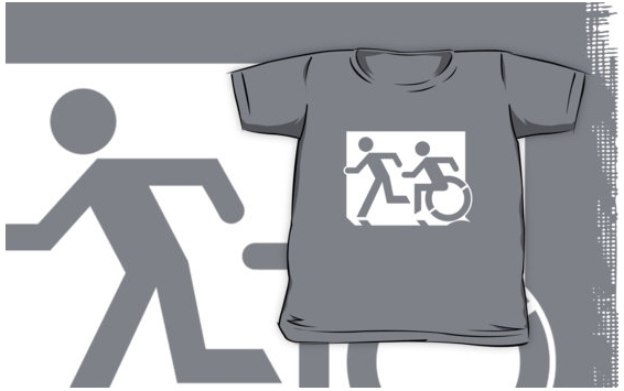 Accessible Exit Sign Project Wheelchair Wheelie Running Man Symbol Means of Egress Icon Disability Emergency Evacuation Fire Safety Kids T-shirt 117