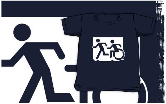 Accessible Exit Sign Project Wheelchair Wheelie Running Man Symbol Means of Egress Icon Disability Emergency Evacuation Fire Safety Kids T-shirt 125