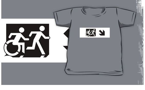 Accessible Exit Sign Project Wheelchair Wheelie Running Man Symbol Means of Egress Icon Disability Emergency Evacuation Fire Safety Kids T-shirt 126