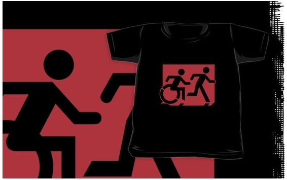 Accessible Exit Sign Project Wheelchair Wheelie Running Man Symbol Means of Egress Icon Disability Emergency Evacuation Fire Safety Kids T-shirt 128