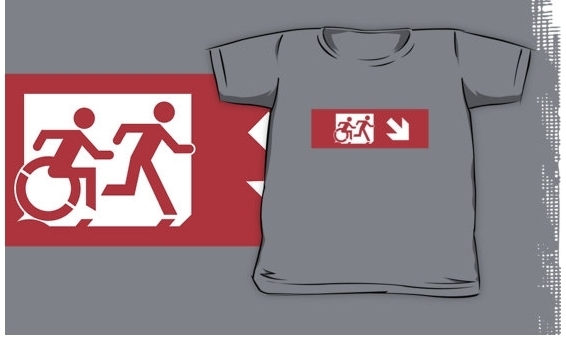 Accessible Exit Sign Project Wheelchair Wheelie Running Man Symbol Means of Egress Icon Disability Emergency Evacuation Fire Safety Kids T-shirt 147