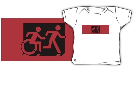 Accessible Exit Sign Project Wheelchair Wheelie Running Man Symbol Means of Egress Icon Disability Emergency Evacuation Fire Safety Kids T-shirt 16