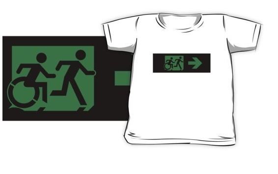 Accessible Exit Sign Project Wheelchair Wheelie Running Man Symbol Means of Egress Icon Disability Emergency Evacuation Fire Safety Kids T-shirt 28