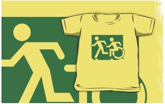 Accessible Exit Sign Project Wheelchair Wheelie Running Man Symbol Means of Egress Icon Disability Emergency Evacuation Fire Safety Kids T-shirt 79