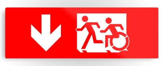 Accessible Exit Sign Project Wheelchair Wheelie Running Man Symbol Means of Egress Icon Disability Emergency Evacuation Fire Safety Metal Printed 13