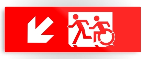Accessible Exit Sign Project Wheelchair Wheelie Running Man Symbol Means of Egress Icon Disability Emergency Evacuation Fire Safety Metal Printed 2