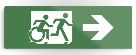 Accessible Exit Sign Project Wheelchair Wheelie Running Man Symbol Means of Egress Icon Disability Emergency Evacuation Fire Safety Metal Printed 28