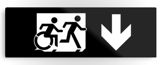 Accessible Exit Sign Project Wheelchair Wheelie Running Man Symbol Means of Egress Icon Disability Emergency Evacuation Fire Safety Metal Printed 44