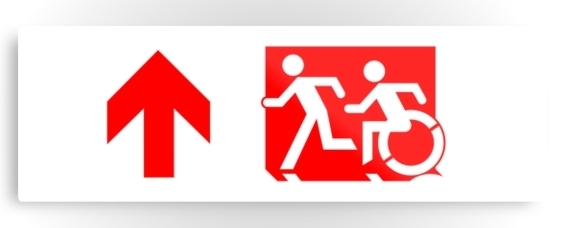 Accessible Exit Sign Project Wheelchair Wheelie Running Man Symbol Means of Egress Icon Disability Emergency Evacuation Fire Safety Metal Printed 60