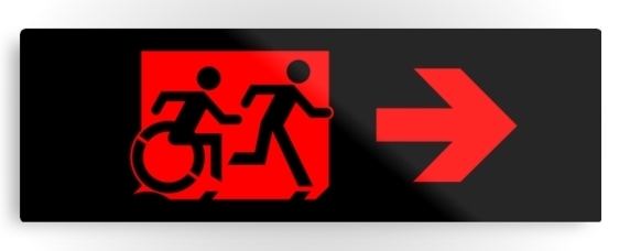 Accessible Exit Sign Project Wheelchair Wheelie Running Man Symbol Means of Egress Icon Disability Emergency Evacuation Fire Safety Metal Printed 69