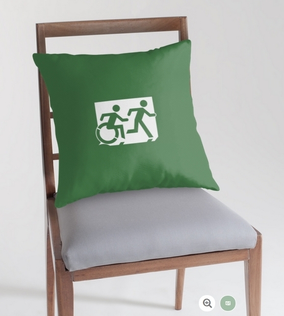 Accessible Exit Sign Project Wheelchair Wheelie Running Man Symbol Means of Egress Icon Disability Emergency Evacuation Fire Safety Throw Pillow Cushion 102