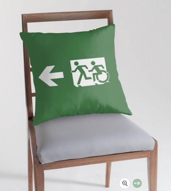 Accessible Exit Sign Project Wheelchair Wheelie Running Man Symbol Means of Egress Icon Disability Emergency Evacuation Fire Safety Throw Pillow Cushion 109