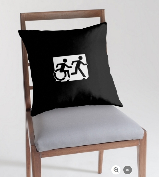 Accessible Exit Sign Project Wheelchair Wheelie Running Man Symbol Means of Egress Icon Disability Emergency Evacuation Fire Safety Throw Pillow Cushion 128
