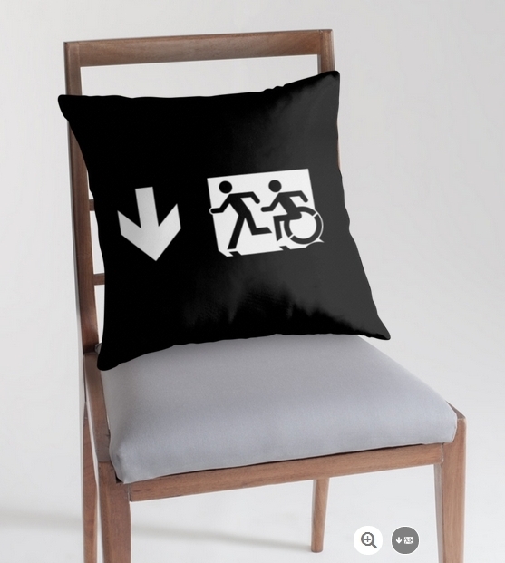 Accessible Exit Sign Project Wheelchair Wheelie Running Man Symbol Means of Egress Icon Disability Emergency Evacuation Fire Safety Throw Pillow Cushion 139