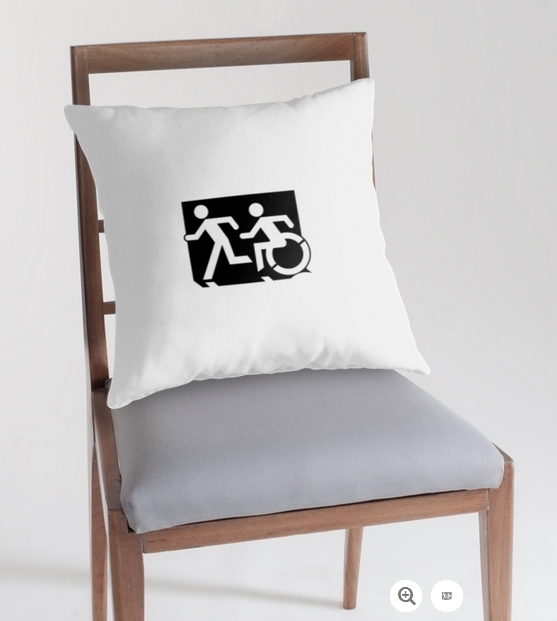 Accessible Exit Sign Project Wheelchair Wheelie Running Man Symbol Means of Egress Icon Disability Emergency Evacuation Fire Safety Throw Pillow Cushion 63