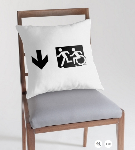 Accessible Exit Sign Project Wheelchair Wheelie Running Man Symbol Means of Egress Icon Disability Emergency Evacuation Fire Safety Throw Pillow Cushion 64