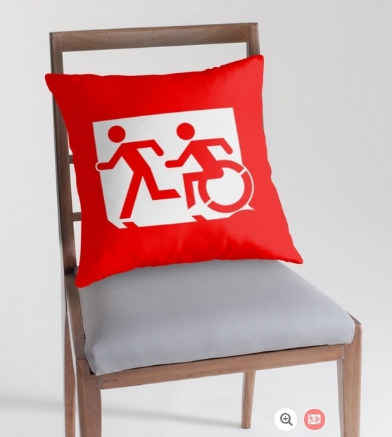 Accessible Exit Sign Project Wheelchair Wheelie Running Man Symbol Means of Egress Icon Disability Emergency Evacuation Fire Safety Throw Pillow Cushion 72