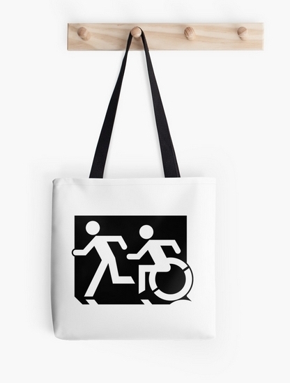 Accessible Exit Sign Project Wheelchair Wheelie Running Man Symbol Means of Egress Icon Disability Emergency Evacuation Fire Safety Tote Bag 134