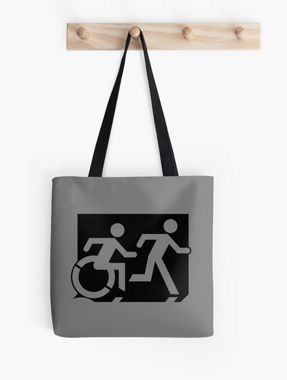 Accessible Exit Sign Project Wheelchair Wheelie Running Man Symbol Means of Egress Icon Disability Emergency Evacuation Fire Safety Tote Bag 147