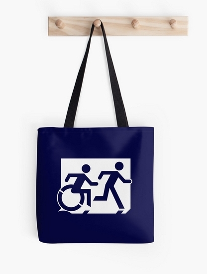 Accessible Exit Sign Project Wheelchair Wheelie Running Man Symbol Means of Egress Icon Disability Emergency Evacuation Fire Safety Tote Bag 149