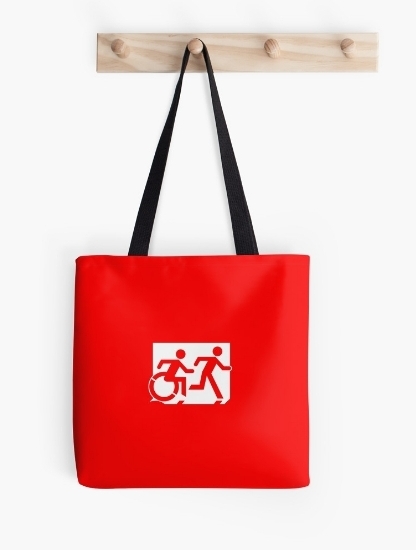 Accessible Exit Sign Project Wheelchair Wheelie Running Man Symbol Means of Egress Icon Disability Emergency Evacuation Fire Safety Tote Bag 25