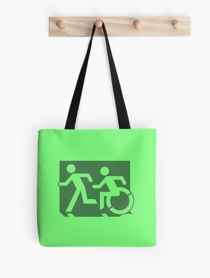 Accessible Exit Sign Project Wheelchair Wheelie Running Man Symbol Means of Egress Icon Disability Emergency Evacuation Fire Safety Tote Bag 34