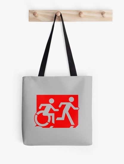 Accessible Exit Sign Project Wheelchair Wheelie Running Man Symbol Means of Egress Icon Disability Emergency Evacuation Fire Safety Tote Bag 46
