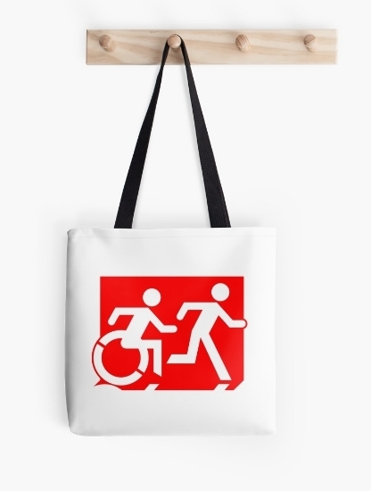 Accessible Exit Sign Project Wheelchair Wheelie Running Man Symbol Means of Egress Icon Disability Emergency Evacuation Fire Safety Tote Bag 64