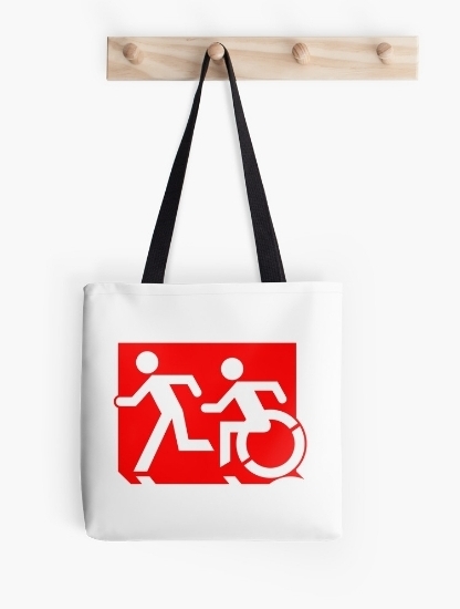 Accessible Exit Sign Project Wheelchair Wheelie Running Man Symbol Means of Egress Icon Disability Emergency Evacuation Fire Safety Tote Bag 78