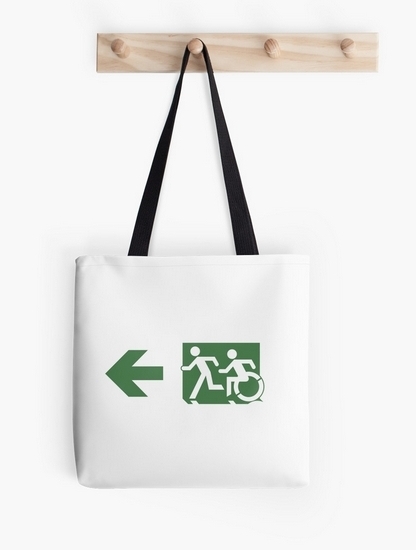 Accessible Exit Sign Project Wheelchair Wheelie Running Man Symbol Means of Egress Icon Disability Emergency Evacuation Fire Safety Tote Bag 98