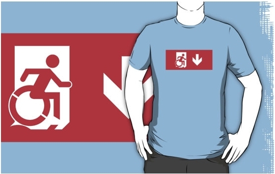 Accessible Exit Sign Project Wheelchair Wheelie Running Man Symbol Means of Egress Icon Disability Emergency Evacuation Fire Safety Adult t-shirt 108